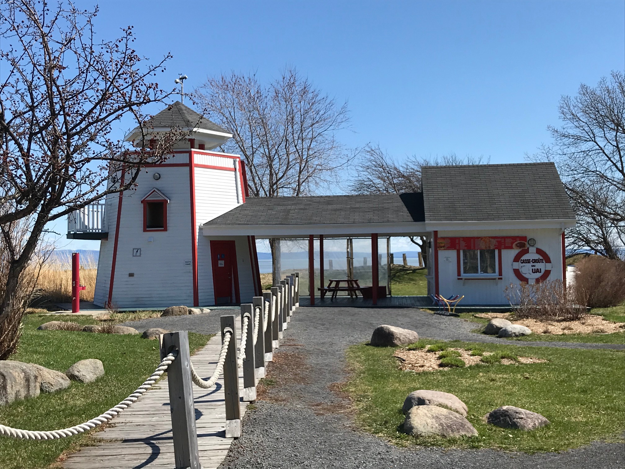 - FEU – un emplacement est prévu près du casse-croûte avec un foyer et des bancs, mais on recommande d’apporter les chaises du cabanon, l’allume-feu du condo (ne pas l’oublier sur place) et votre bois de camping (souvent en vente sur la route vers BSP ou au Magasin général du village).